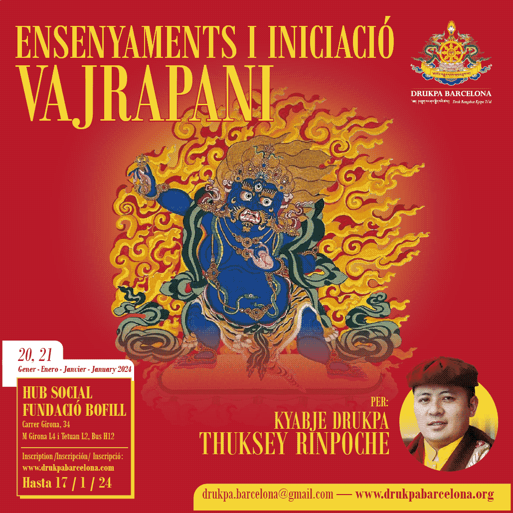 KYABJE DRUKPA THUKSEY RINPOCHE: Conferència pública gratuïta – Ensenyaments i iniciació de Vajrapani