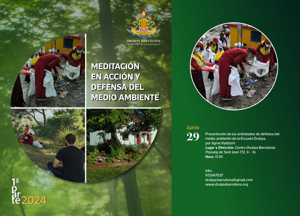 29 / junio / 2024 Presentación acciones de la escuela Drukpa de defensa del medio ambiente. 11:30 – Centro Drukpa Barcelona