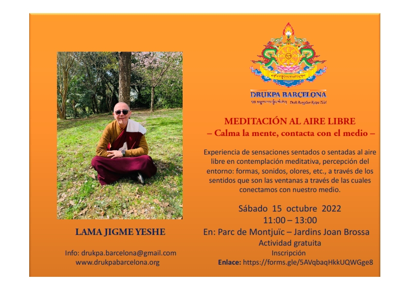 Meditación al aire libre dirigida por Lama J Yeshe 15-10-22 – Actividad gratuita –