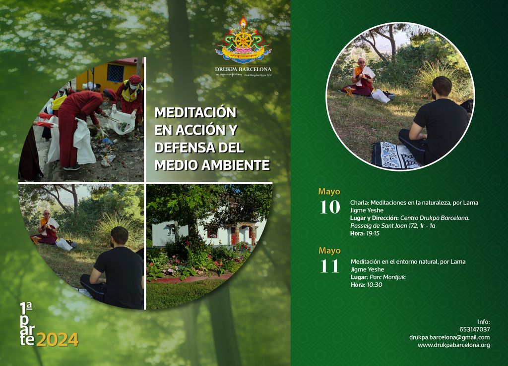 10 y 11 / mayo / 2024. Meditaciones en la naturaleza a cargo de Lama Jigme Yeshe. 19:15 – Centro Drukpa Barcelona y 10:30 – Parc Montjuïc