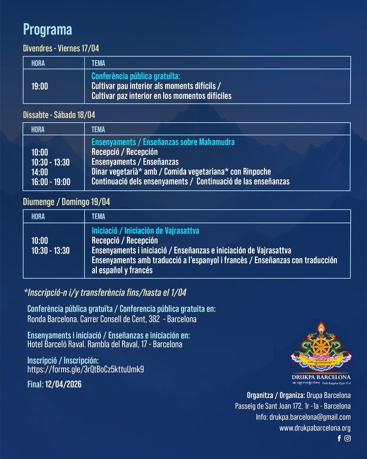 Más información: drukpa.barcelona@gmail.com